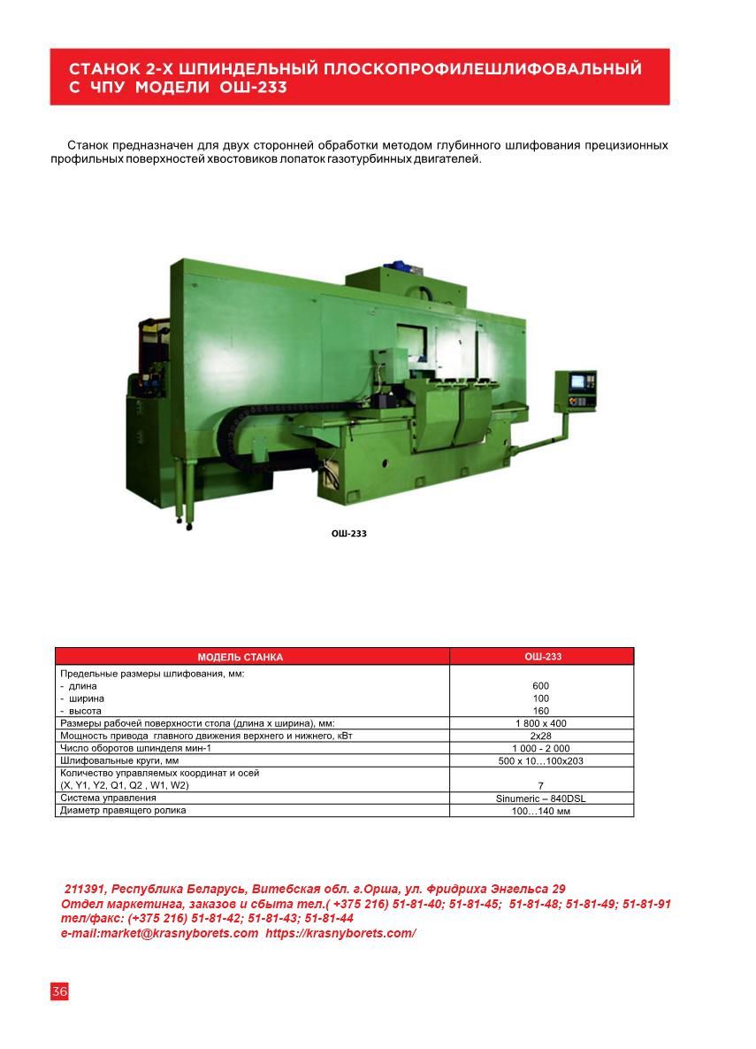 - СТАНОК 2-Х ШПИНДЕЛЬНЫЙ ПЛОСКОПРОФИЛЕШЛИФОВАЛЬНЫЙ С ЧПУ ОШ-233