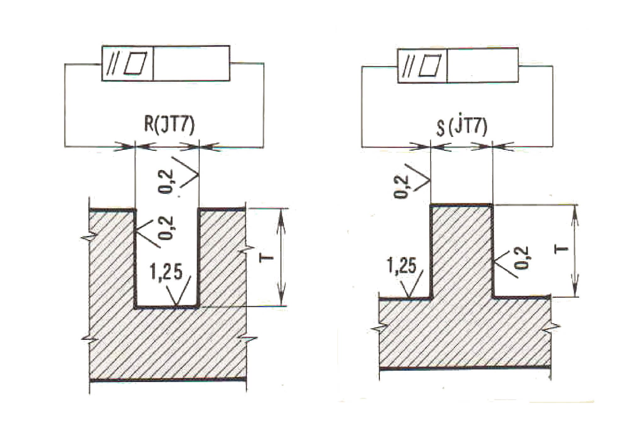Наибольшие размеры шлифовального паза или шипа (TxR)или (TхS)