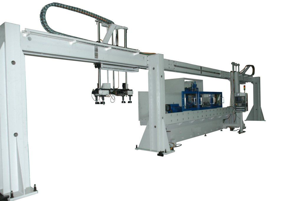 Общее количество станков модели ОШ-651.2.Ф3, применяемых в автоматической линии – две единицы. Станки установлены последовательно, лицевой частью напротив друг друга. Для обеспечения снятия – установки обрабатываемой детали, каждый станок комплектуется портальным манипулятором с гидро и электрооборудованием. Автоматизация работы манипулятора обеспечивается системой ЧПУ станка.