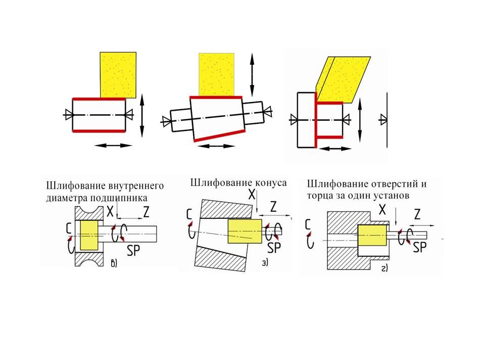 - вращение шлифовального круга для внутреннего шлифования (координата SP2);