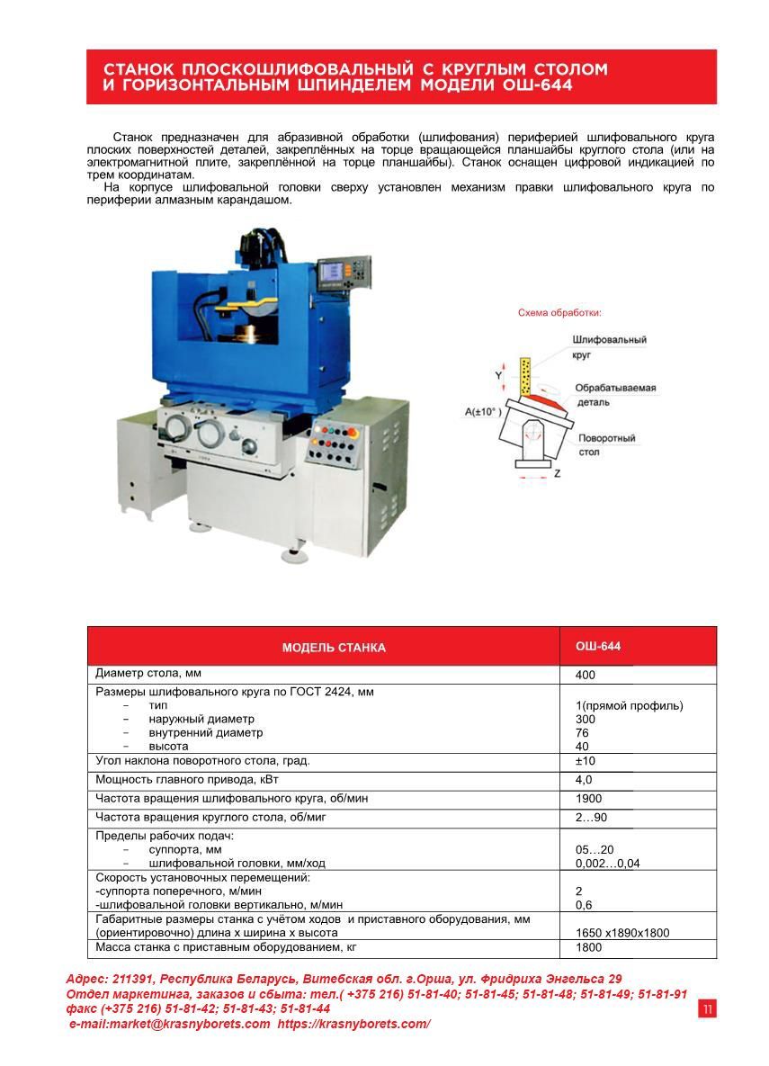 - СТАНОК ПЛОСКОШЛИФОВАЛЬНЫЙ С КРУГЛЫМ ПОВОРОТНЫМ СТОЛОМ И ГОРИЗОНТАЛЬНЫМ ШПИНДЕЛЕМ ОШ-644