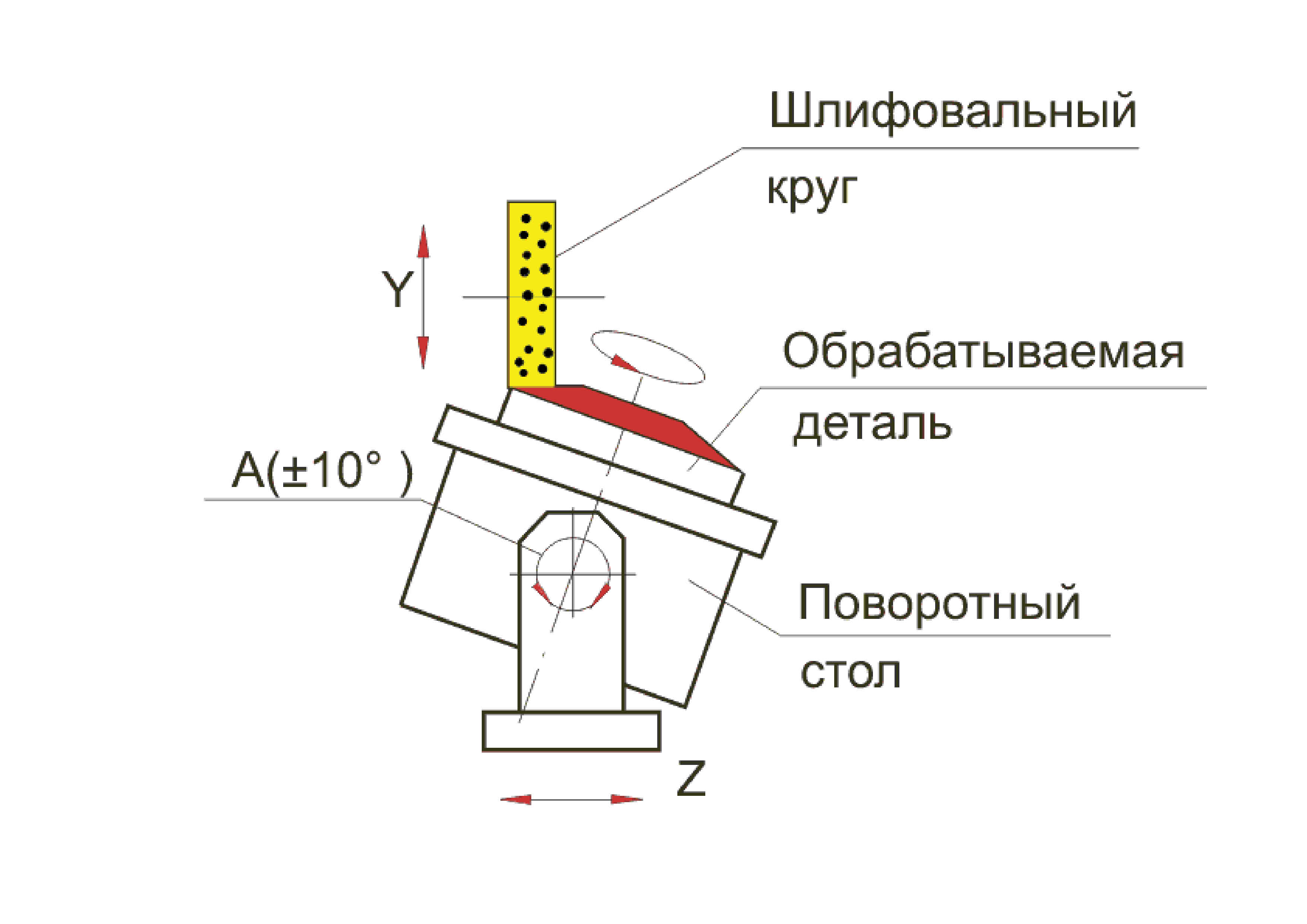 -вертикальное перемещение алмазного карандаша механизма правки;