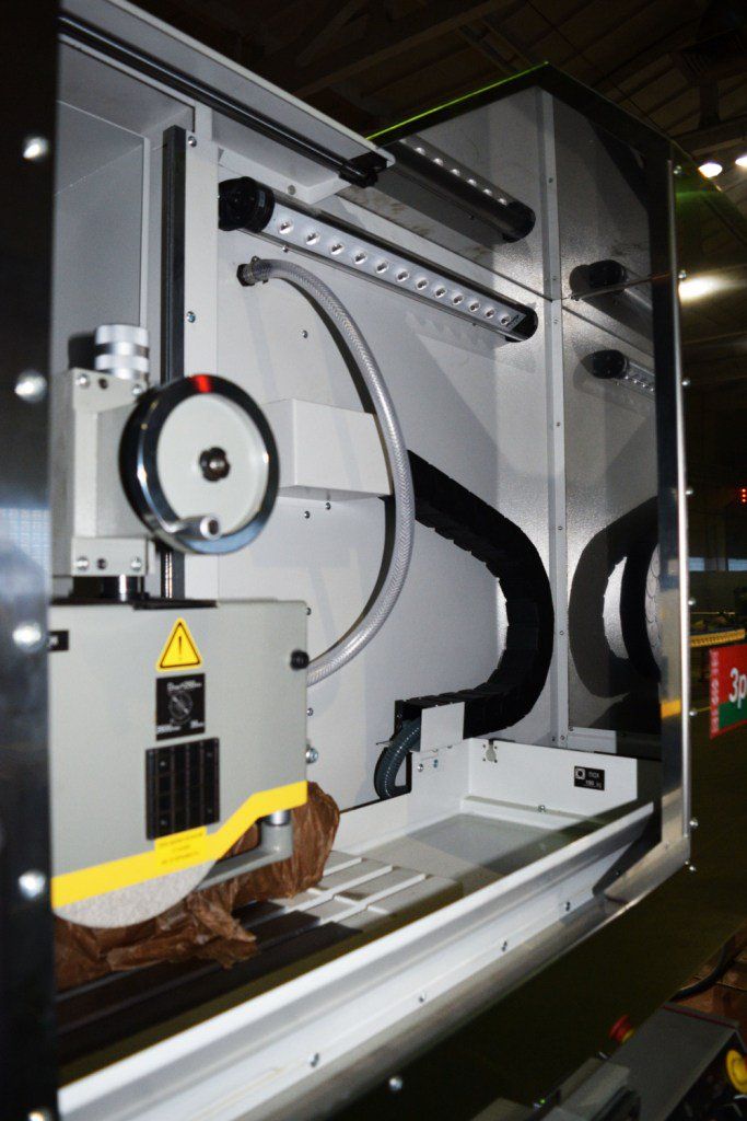 - Перемещение суппорта и шлифовальной головки осуществляется на роликовых опорах качения посредством шарико-винтовых пар.