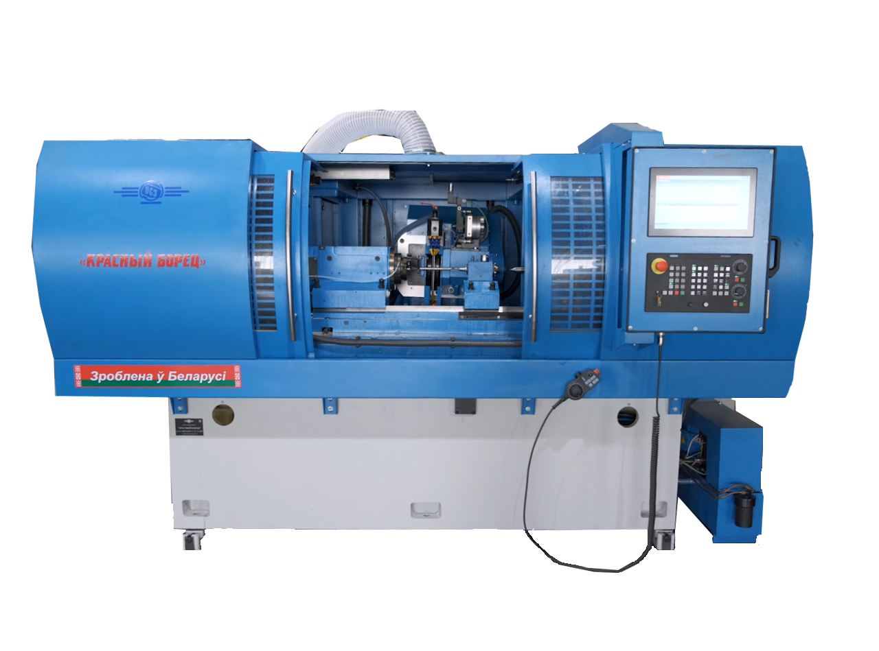 Станок оснащается датчиком касания и механизмом контурной правки с вращающимся алмазным роликом, установленным на передней бабке. Управление полуавтомата от системы ЧПУ.