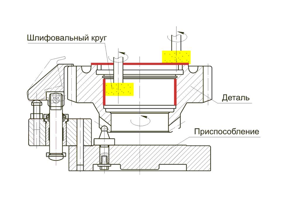Обработка деталей на полуавтомате производится за счёт вертикального перемещения (подачи) шлифовального круга и кругового вращения детали с осцилляцией или продольной подачей. Обработка торцов может осуществляться однопроходным глубинным методом при радиальной подаче (съём припуска за один проход) или как обычное торцевое шлифование с правкой и поднутрением шлифовального круга по УП ЧПУ с компенсацией.