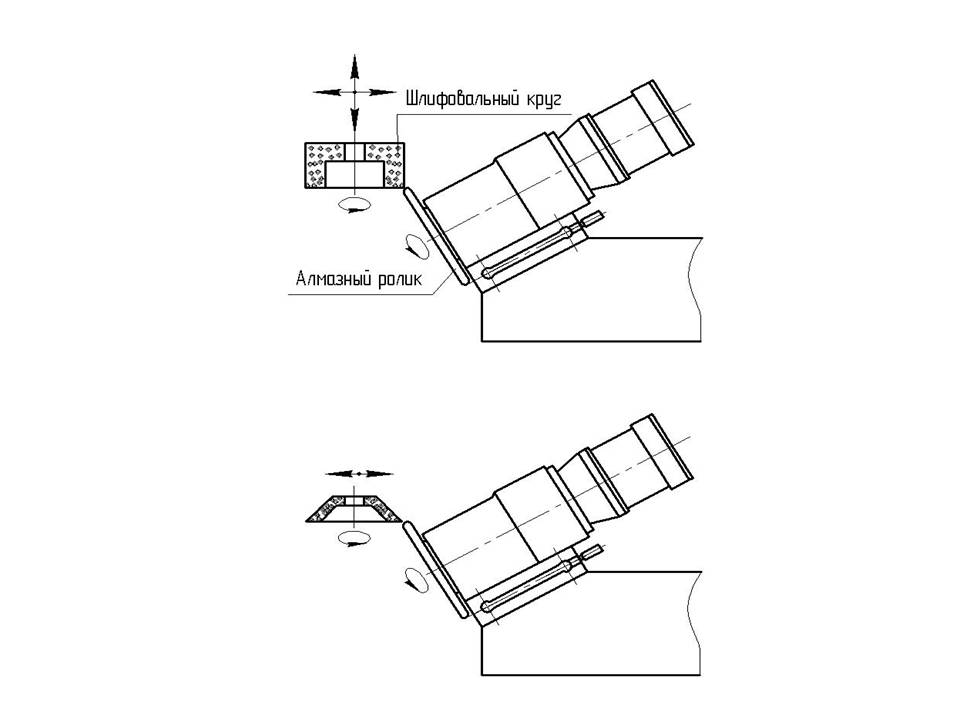 - Поворотный механизм правки шлифовального круга алмазами в оправе.