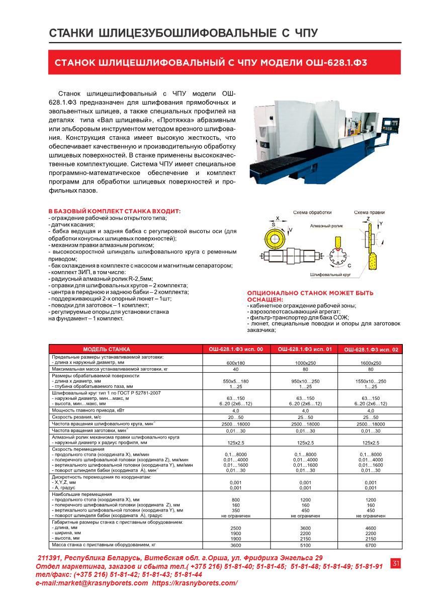 - CТАНОК ШЛИЦЕШЛИФОВАЛЬНЫЙ С ЧПУ ОШ-628.1.Ф3 ИСПОЛНЕНИЕ 01