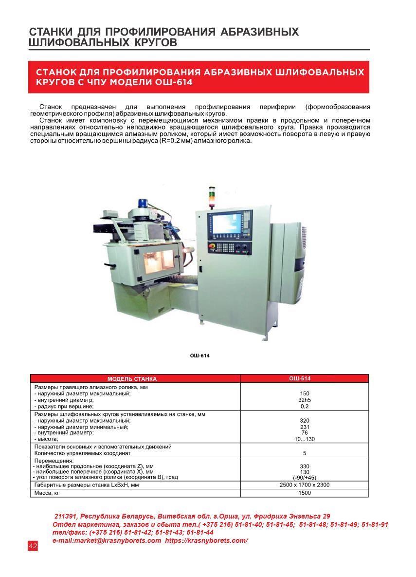 - СТАНОК ДЛЯ ПРОФИЛИРОВАНИЯ АБРАЗИВНЫХ ШЛИФОВАЛЬНЫХ КРУГОВ С ЧПУ МОДЕЛИ ОШ-614