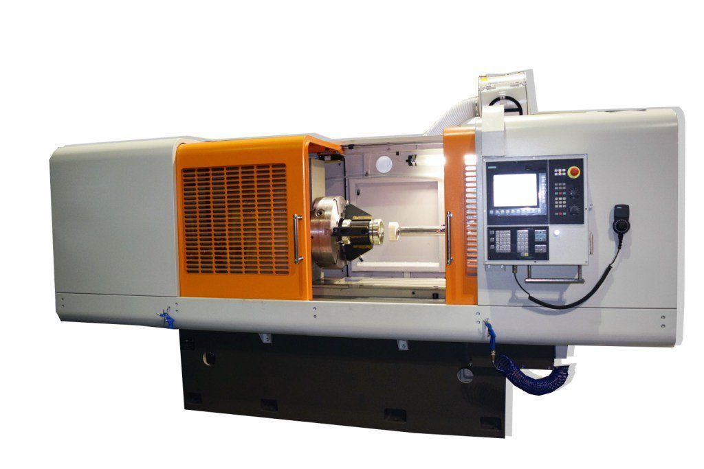 Станок имеет компоновку с перемещающейся шлифовальной бабкой в поперечном направлении, продольным перемещением бабки изделия относительно оси шлифовального круга и вращением шпинделя бабки изделия. Обрабатываемая деталь устанавливается в патроне бабки изделия. На стол станка возможна установка поддерживающего люнета. Установка детали осуществляется вручную.