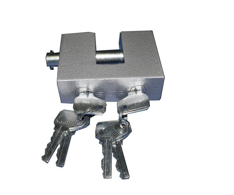 Замок состоит из корпуса, утопающей дужки и ключей. В корпусе расположены два цилиндровых механизма, имеющих разню секретность.