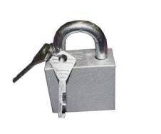 Замок состоит из корпуса, дужки и ключей. В корпусе расположен запорный дисковый механизм.